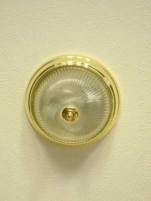 Now, I would never say I hate anything in our home. I love our home like a part of our family, really I do. But there are some things I just don't care for. AT ALL. And most of them are things I can't do much about until I hire someone. I have changed out many light fixtures in this house, but the one pictured here is up in the loft, about 15 feet up. Don't you doubt for a second I haven't considered risking life and limb on a 12 foot ladder to change them out. Numerous times. Really. I stand there and think, well, if I have someone stand below in case I fall...